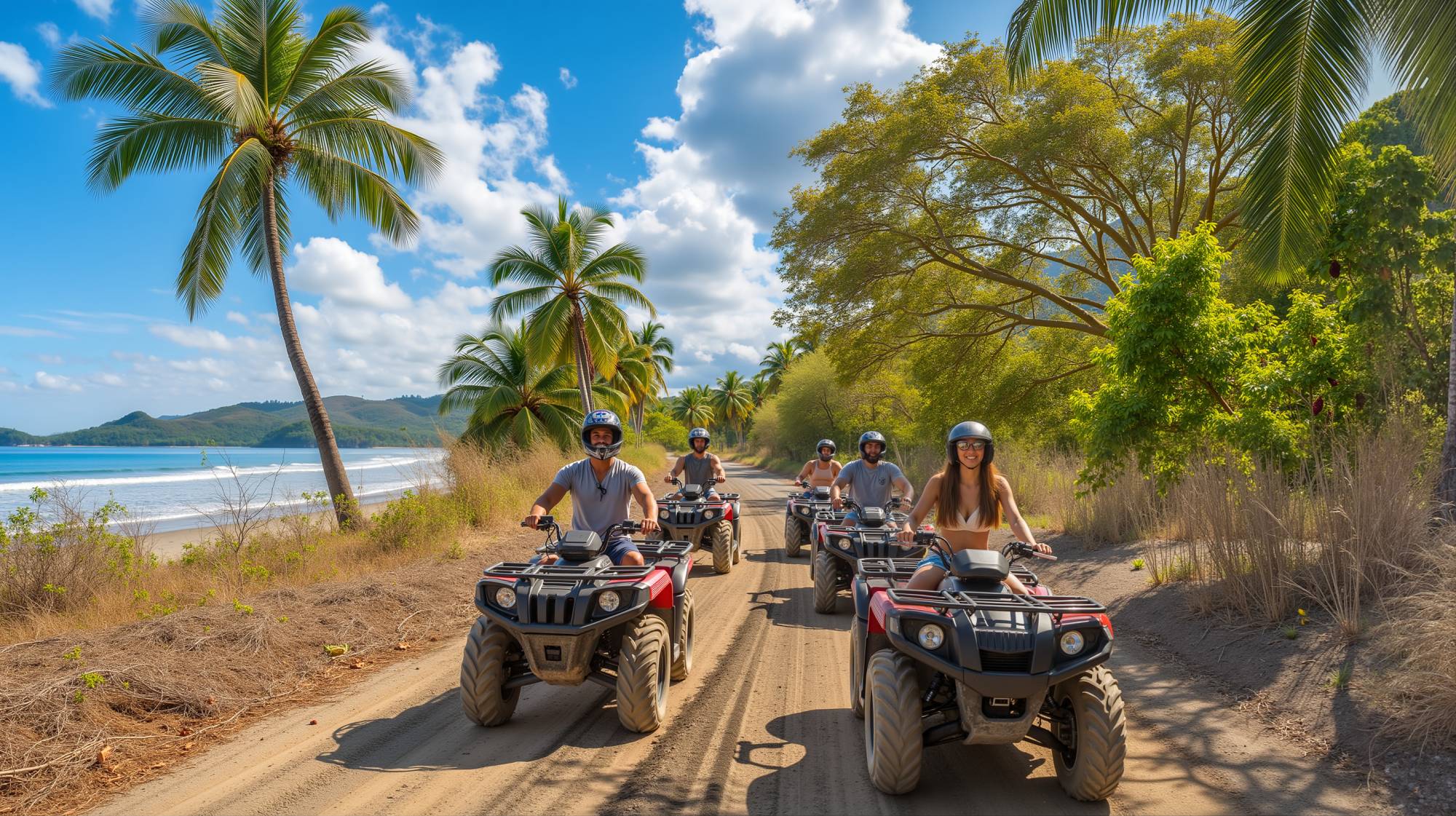 Embark on a thrilling ATV ride through the rugged mountains and jungle trails of Guanacaste, where adventure meets nature at the Monkey Sanctuary. Cruise along winding dirt paths past cantaloupe farms, hidden villages, and scenic lookouts with breathtaking views of the Pacific. Keep an eye out for howler monkeys, exotic birds, and other jungle wildlife as you explore this biodiverse region. No special license is needed, and kids as young as 3 can ride as passengers, making it an exciting and accessible tour for the whole family.